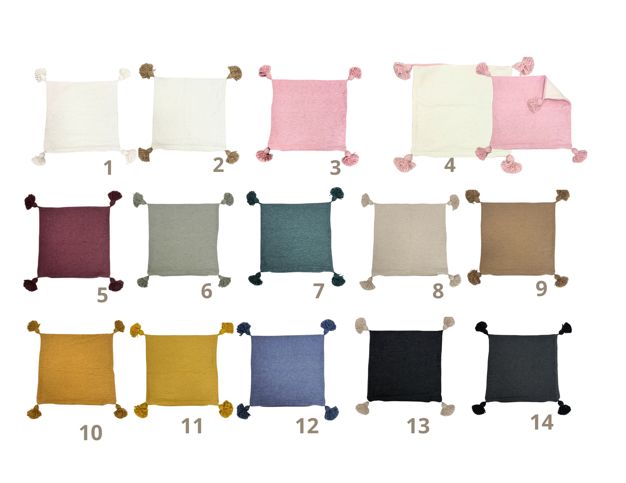 Avec la Housse de coussin pompons Apportez une touche bohème chic et chaleureuse à votre intérieur avec notre housse de coussin pompons de 45 x 45 cm. Fabriquée à la main au Maroc, cette housse unique allie élégance, confort et savoir-faire artisanal. Ses finitions en pompons et son motif à rayures apportent du charme à tous les styles de décoration, que ce soit moderne, vintage ou bohème.