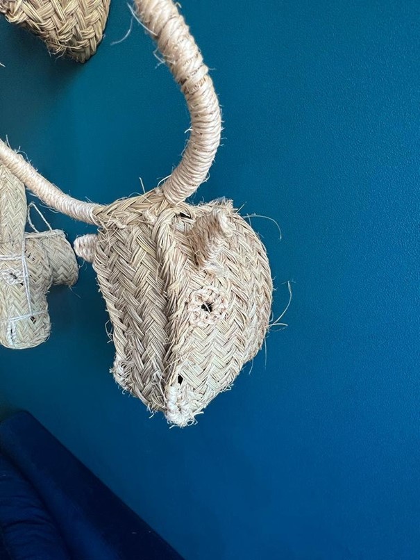 Ce trophée en paille se distingue par sa durabilité et son caractère écologique. Confectionné à partir de matériaux naturels, il s’inscrit dans une démarche responsable et respectueuse de l’environnement. Son entretien est simple : un nettoyage régulier avec un chiffon humide suffit pour préserver ses couleurs et sa texture. En évitant les produits chimiques, vous garantissez la longévité de ce décor unique. Léger et maniable, ce trophée s’adapte facilement à toutes vos envies de décoration. Que vous souhaitiez décorer un salon, une chambre ou même un bureau, il apportera une ambiance chaleureuse et naturelle. Son style artisanal et authentique complète parfaitement un intérieur bohème, ethnique ou contemporain, en ajoutant une touche d’originalité subtile et élégante.