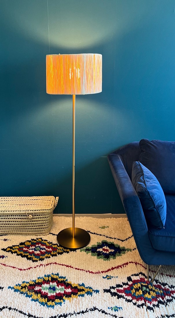 Pour préserver la beauté naturelle de votre abat-jour en raphia, nettoyez-le délicatement avec un chiffon sec ou légèrement humide. Évitez les produits chimiques pour ne pas altérer les fibres. Dimensions du pied : diamètre 29 cm, hauteur 130 cm. Abat-jour : diamètre 40 cm, hauteur 25 cm.