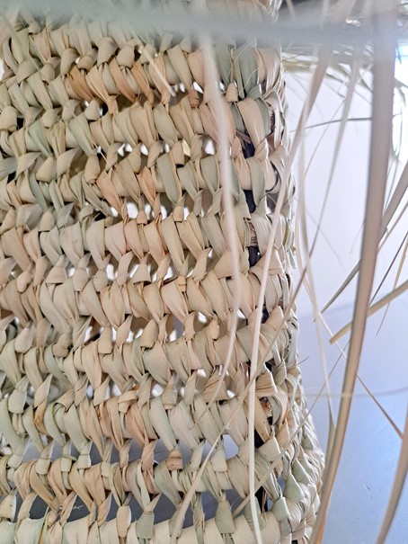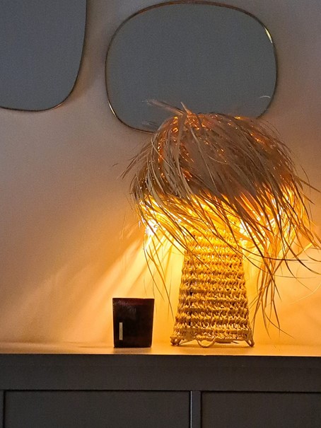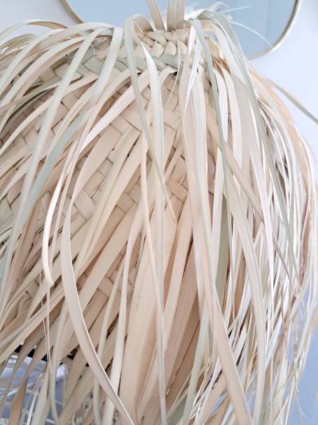 Chaque lampe est fabriquée artisanalement, ce qui signifie que les dimensions et les couleurs peuvent légèrement varier. Lorsqu’elles sont fraîches, les fibres naturelles affichent une teinte verte qui s’éclaircit progressivement grâce au séchage naturel au soleil. Cette évolution de couleur témoigne de l’authenticité du produit et ajoute au charme naturel de la lampe.