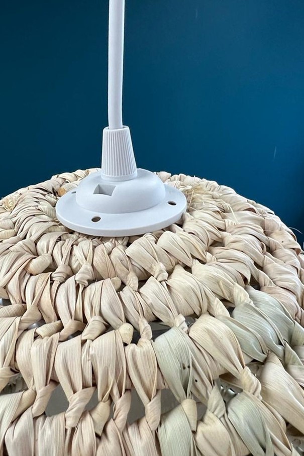 Chaque pièce est le fruit d’un savoir-faire traditionnel transmis depuis des générations. Grâce à un tressage minutieux et à l’usage de fibres naturelles, chaque suspension présente de légères variations de teinte et de forme. Ce caractère artisanal fait toute son authenticité. De plus, la fibre de palmier est durable et résistante.