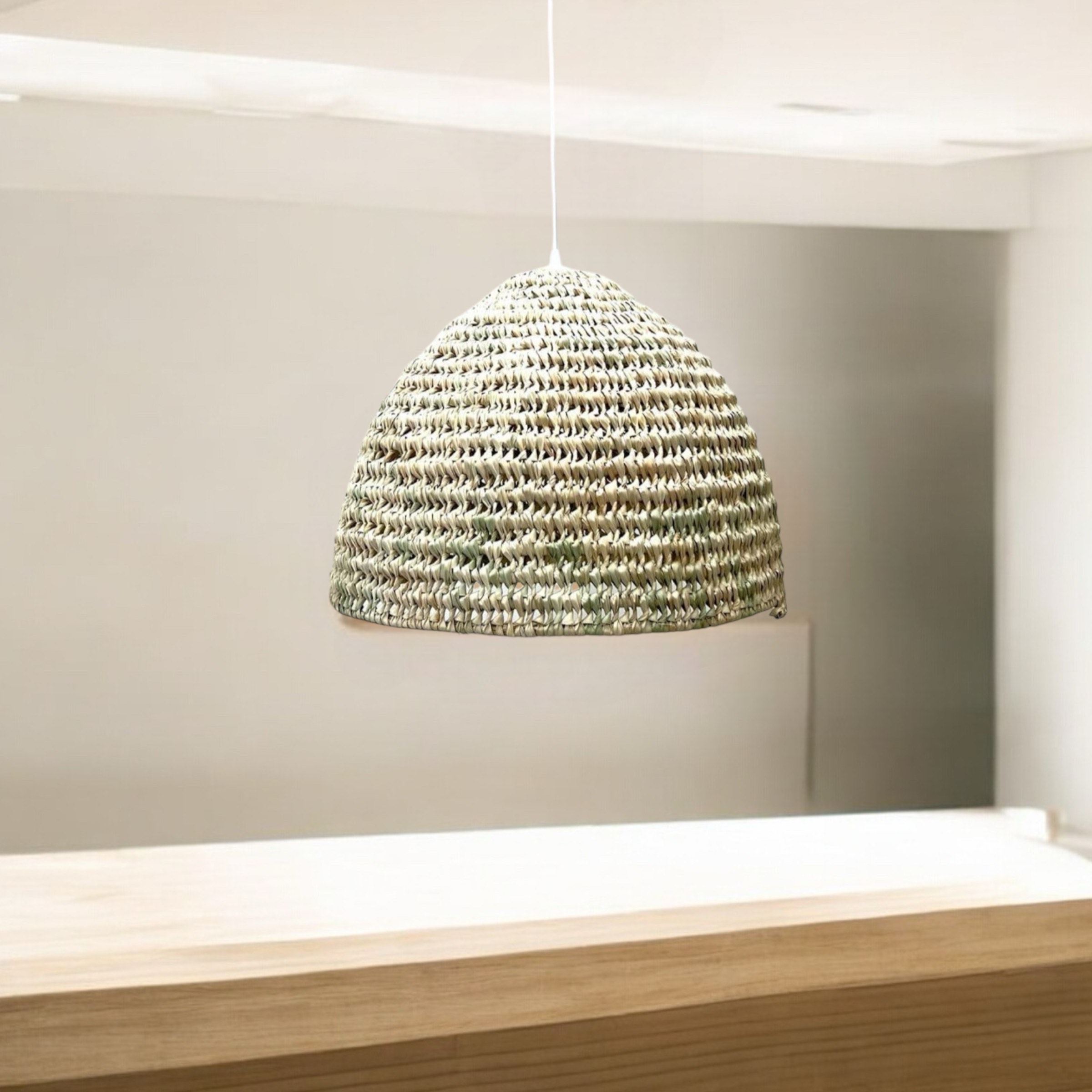 Suspension en feuilles de palmier, la suspension EVA séduit par sa forme douce et son tressage naturel. Fabriquée à la main par des artisans marocains, elle offre une décoration unique à votre intérieur. Son style bohème s’intègre facilement dans un salon, une chambre ou une terrasse abritée.