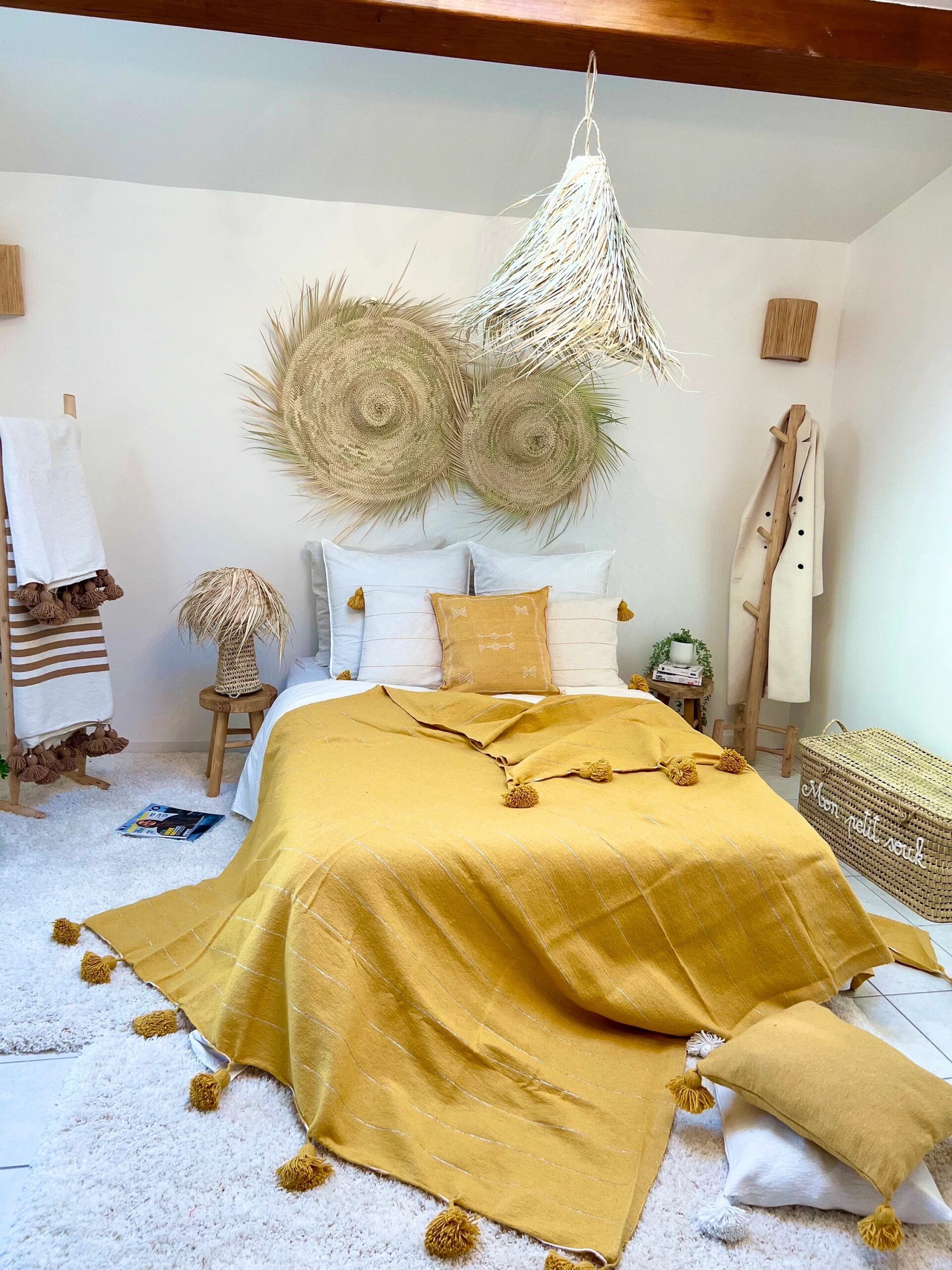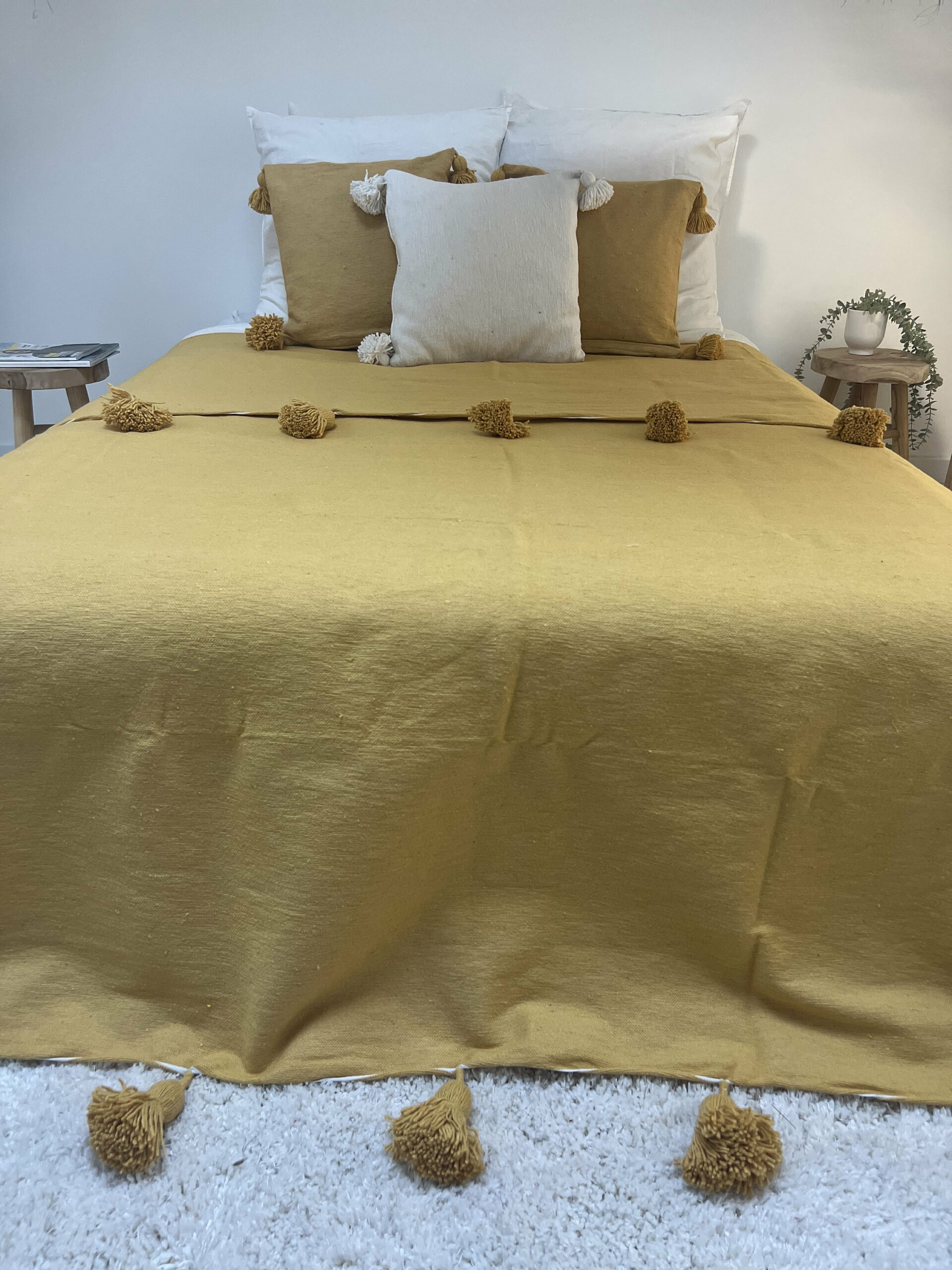Soyez le premier à laisser votre avis sur “Plaid à pompons berbère marocain Moutarde authentique”