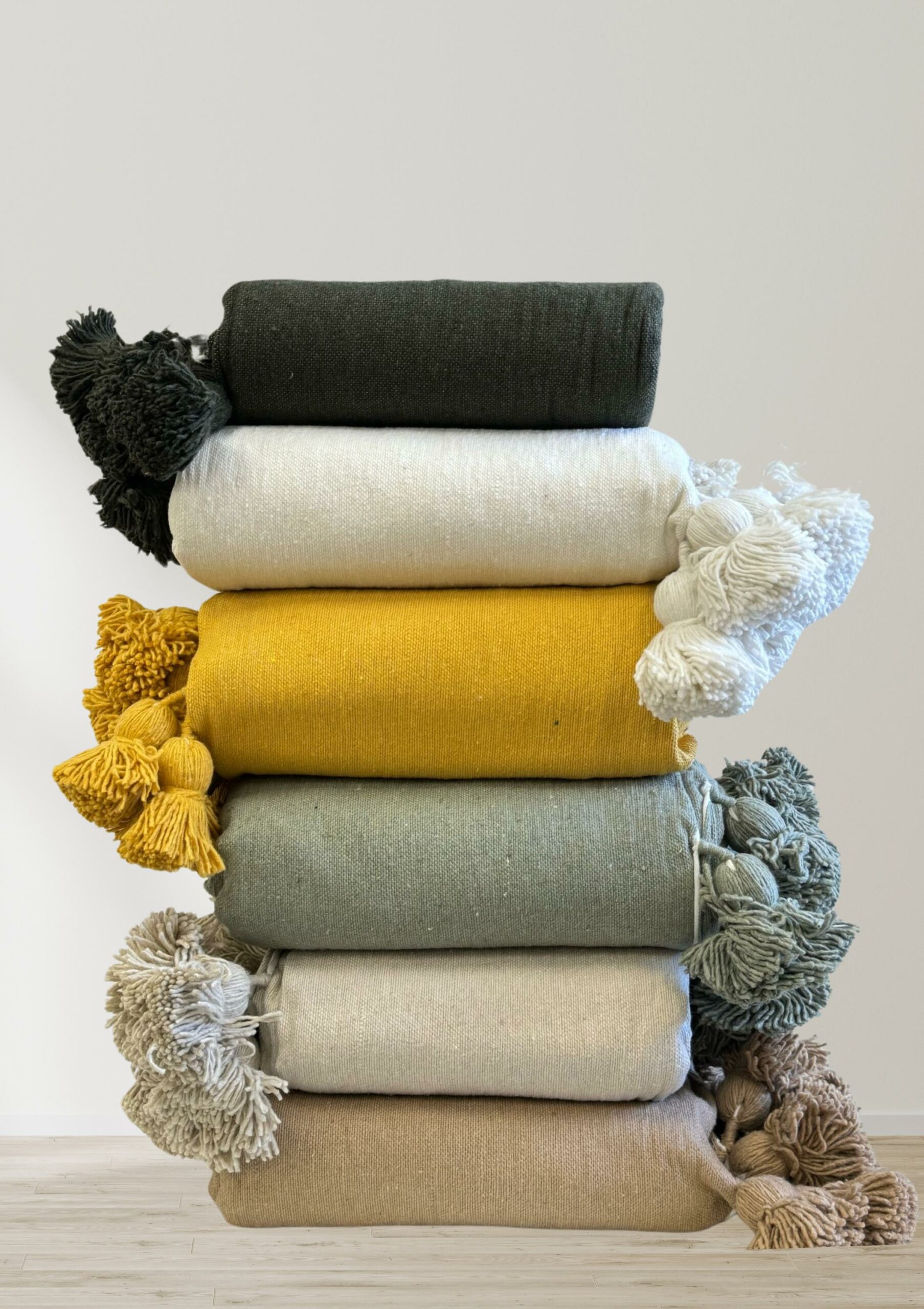 Soyez le premier à laisser votre avis sur “Plaid à pompons berbère marocain Vert kaki authentique (1.5/2.5)”