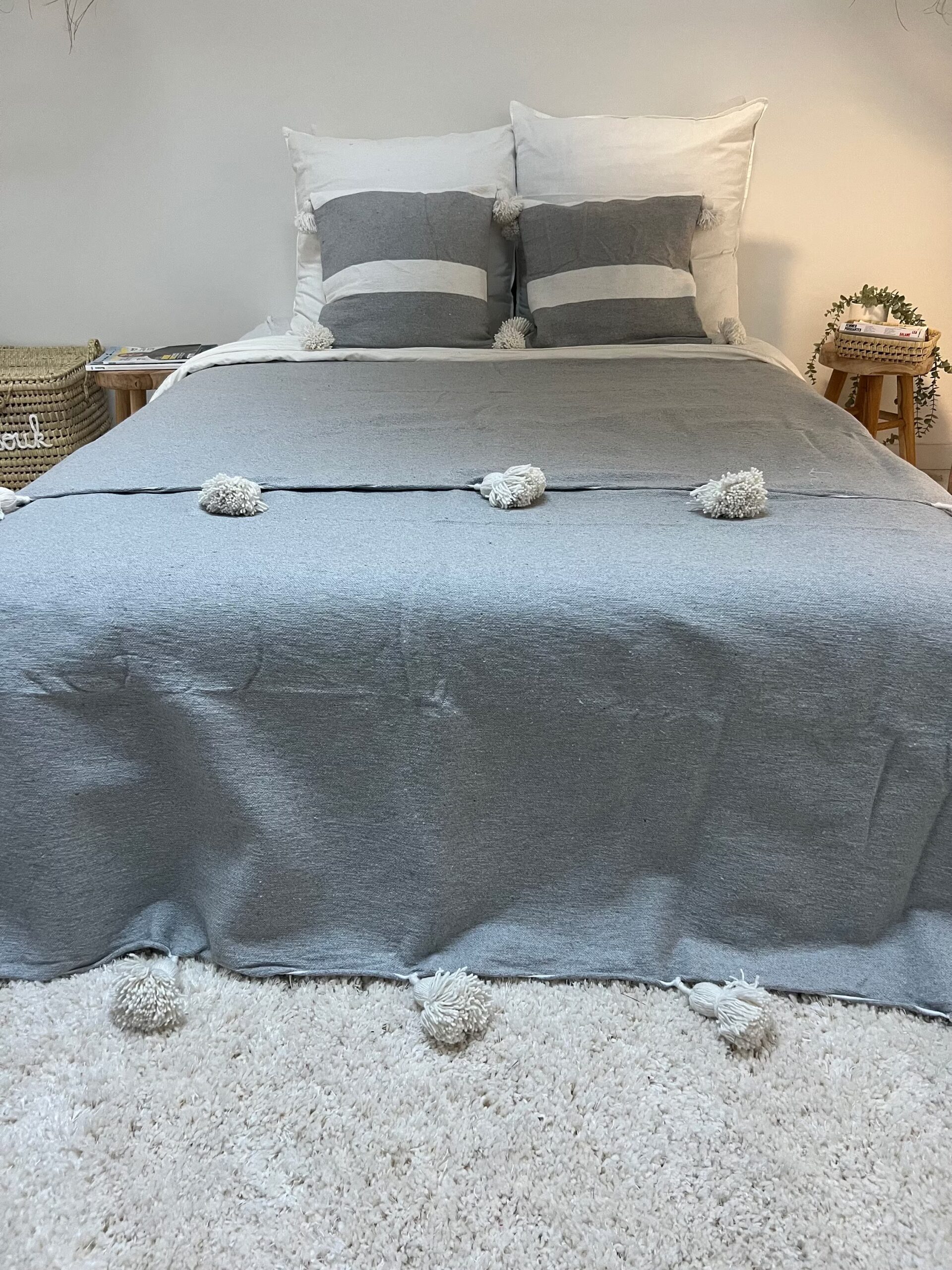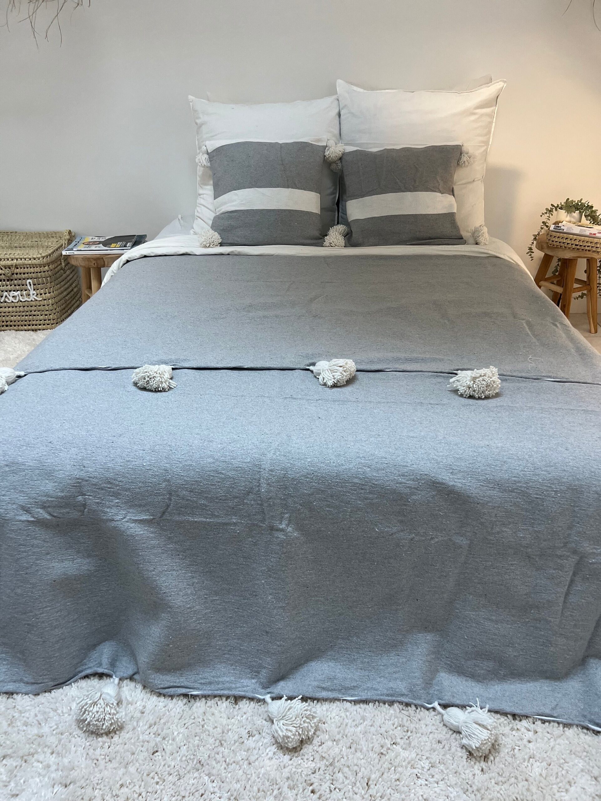 Soyez le premier à laisser votre avis sur “Plaid Gris à pompons Blanc berbère marocain authentique (2/3)”