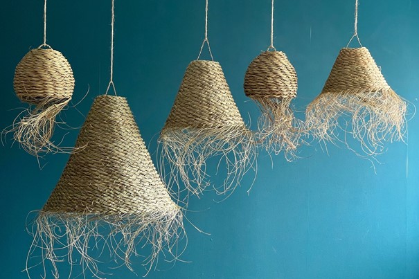 Tressage soigné et lumière tamisée Suspension Artisanale en Halfa