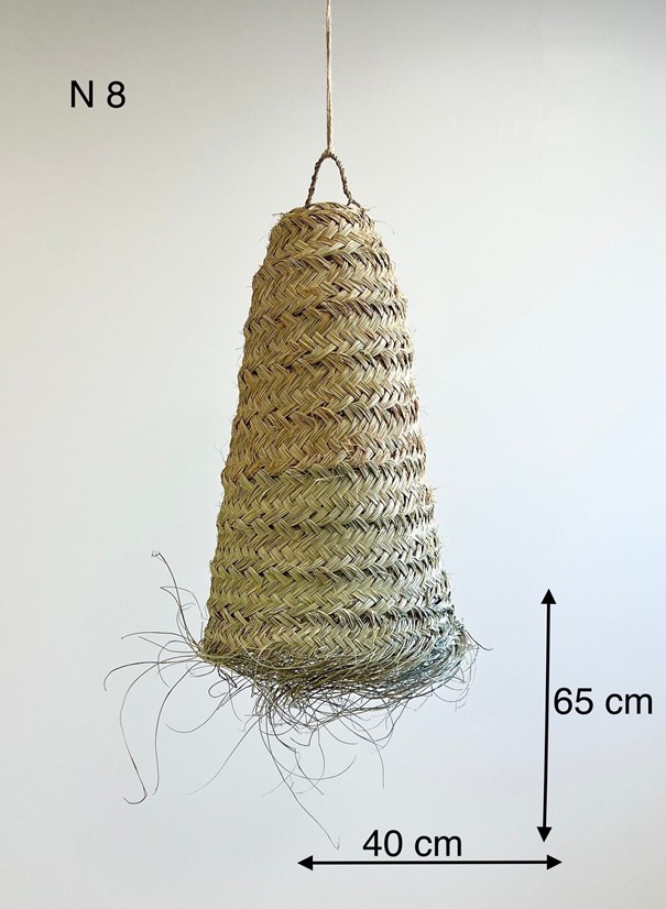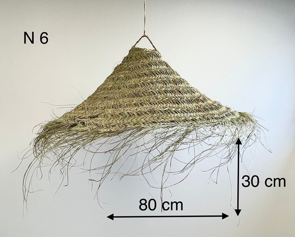 Fabriquée artisanalement avec des feuilles séchées au soleil, chaque suspension est une pièce unique. Les variations naturelles de teinte et de texture apportent un charme authentique à chaque luminaire. Ce travail manuel confère une âme à chaque pièce, éloignée des objets standardisés. Grâce à cette fabrication soignée, le luminaire artisanal devient un véritable élément de décoration.