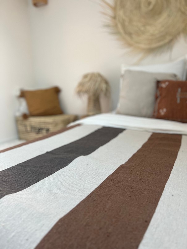 Le plaid artisanal pour l’hiver est un incontournable pour créer une ambiance chaleureuse pendant les saisons froides. Entièrement tissé à la main au Maroc, il est confectionné par des artisans au savoir-faire traditionnel. Chaque pièce est unique, avec un tissage en coton doux qui réchauffe les soirées et sublime votre décoration.