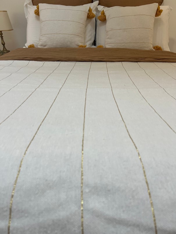 Avec ses lignes sobres et sa matière naturelle, ce plaid apporte du caractère à votre pièce. Il s’adapte aussi bien à une décoration épurée qu’à un univers plus ethnique. Vous pouvez le poser en jeté de lit, l’utiliser pour réchauffer vos soirées ou même l’emporter lors d’un pique-nique chic. Sa polyvalence vous permet de le changer de place au gré de vos envies.
