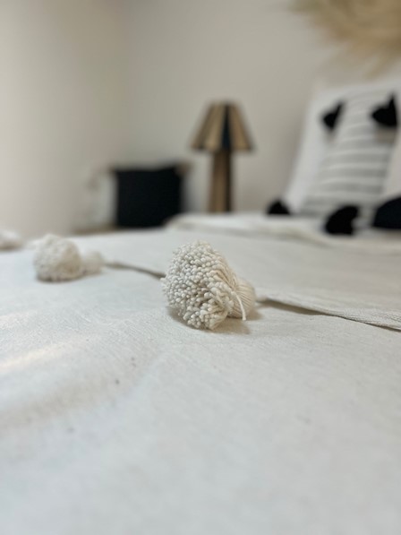 Grâce à ses teintes naturelles et son style artisanal, ce plaid s’intègre facilement dans différents univers déco : bohème, ethnique, minimaliste ou encore contemporain. C’est un accessoire polyvalent qui attire le regard et invite au confort. Avec ses dimensions généreuses de deux mètres quarante par trois mètres, il enveloppe vos soirées d’une douceur réconfortante.