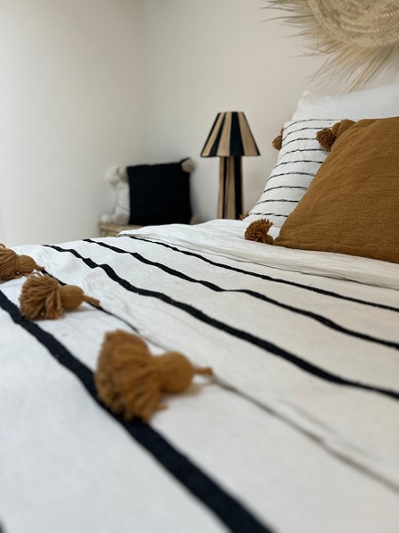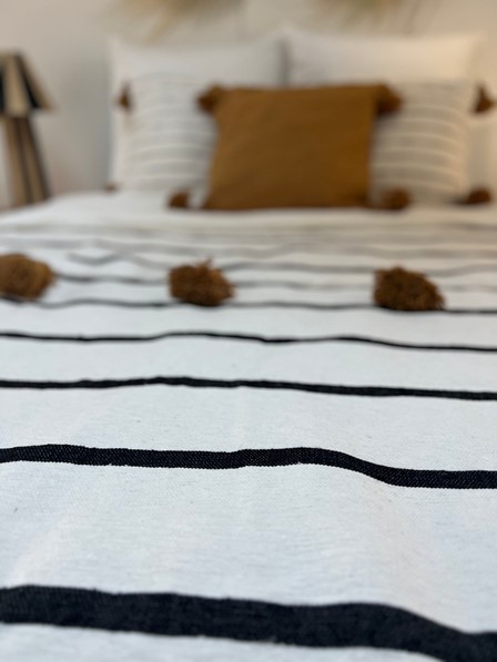 Ce plaid en coton tissé main ne se contente pas d’être décoratif : il invite au voyage. Son allure chaleureuse et ses motifs inspirés des traditions berbères marocaines évoquent un art de vivre authentique, simple et raffiné. Chaque détail raconte une histoire, chaque fibre incarne le lien entre culture et confort. Placé dans un salon ou une chambre, il transforme l’ambiance et réchauffe l’atmosphère. Vous pouvez aussi l’offrir comme cadeau unique, chargé de sens. C’est une pièce artisanale qui traverse le temps, parfaite pour celles et ceux qui aiment les objets durables et profondément humains.